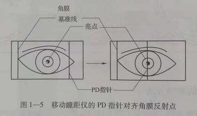 6)分别移动左右眼PD调节键,使PD指针与角膜上的反射点对齐,如图1-5所示。