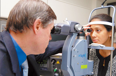 5.调节移动手柄控制观察系统与被检眼间的距离,调整焦面以求得清晰的观察效果。